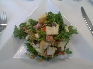This was outstanding – probably my favorite portion of the meal. Tangy, briny olives tossed with peppery greens and savory meats, cheeses and some sharp marinated vegetables. It all worked so well together that I could not stop eating it. I seriously almost licked the plate clean. But I held back because I knew there were two more courses on their way…