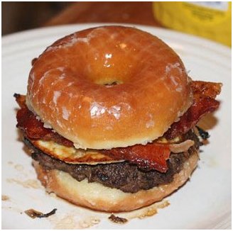 - Our very own Great New York State Fair has announced that among its food offerings this year will be a diet-crippling burger that tips the scales at 1500 calories. The gut-busting “Big Kahuna Donut Burger” is a half-pound patty topped with cheese, bacon, lettuce, tomato, and onions, all sandwiched between two grilled glazed donuts. Yawn. We’ve seen these before (here, here and here). The website says “only at the Great New York State Fair.” That’s not even *kinda* true.