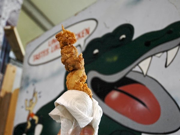 - Alligator Three Ways – Seasoned alligator sausage on-a-stick, smoked or barbecue alligator ribs, fried alligator legs