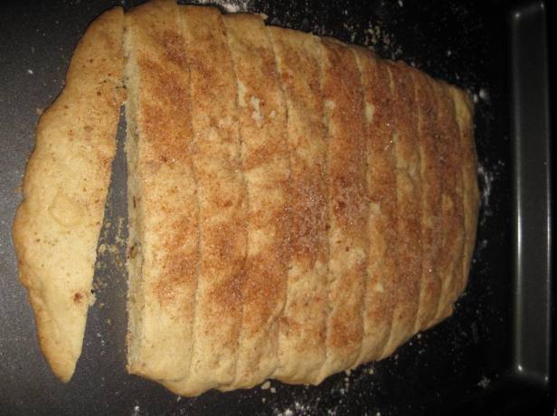 Bake at 350° for 20 minutes. Remove from oven. Slice into rectangles. Turn rectangles on their sides and sprinkle with more cinnamon-sugar.