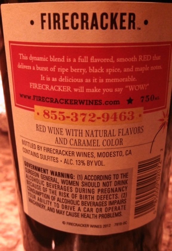 Another awful selection? Firecracker’s White blend. Tastes like pineapple-flavored corn syrup, accented heavily with Sweet Tarts. Just terrible. I want my $8.00 back (that was for two bottles). Not a bargain at all.